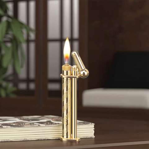 Isqueiro Cilíndrico Grande Recarregável de Gás Butano com Chama Suave em Liga de Zinco Metálica Durável YB-031YIBAO