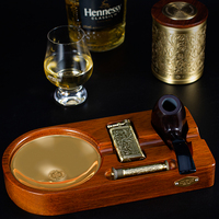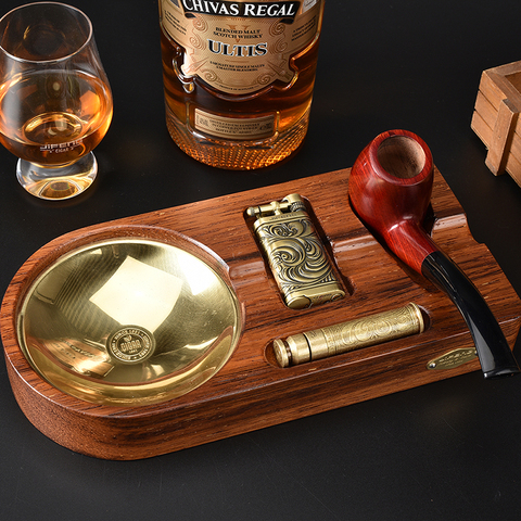 JIFENG JF-TZ-9 클래식 럭셔리 나무 황동 담배 파이프 홀더 재떨이 액세서리 세트